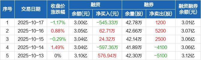 广州港:融资净偿还545.33万元,融资余额3亿元(10-17)