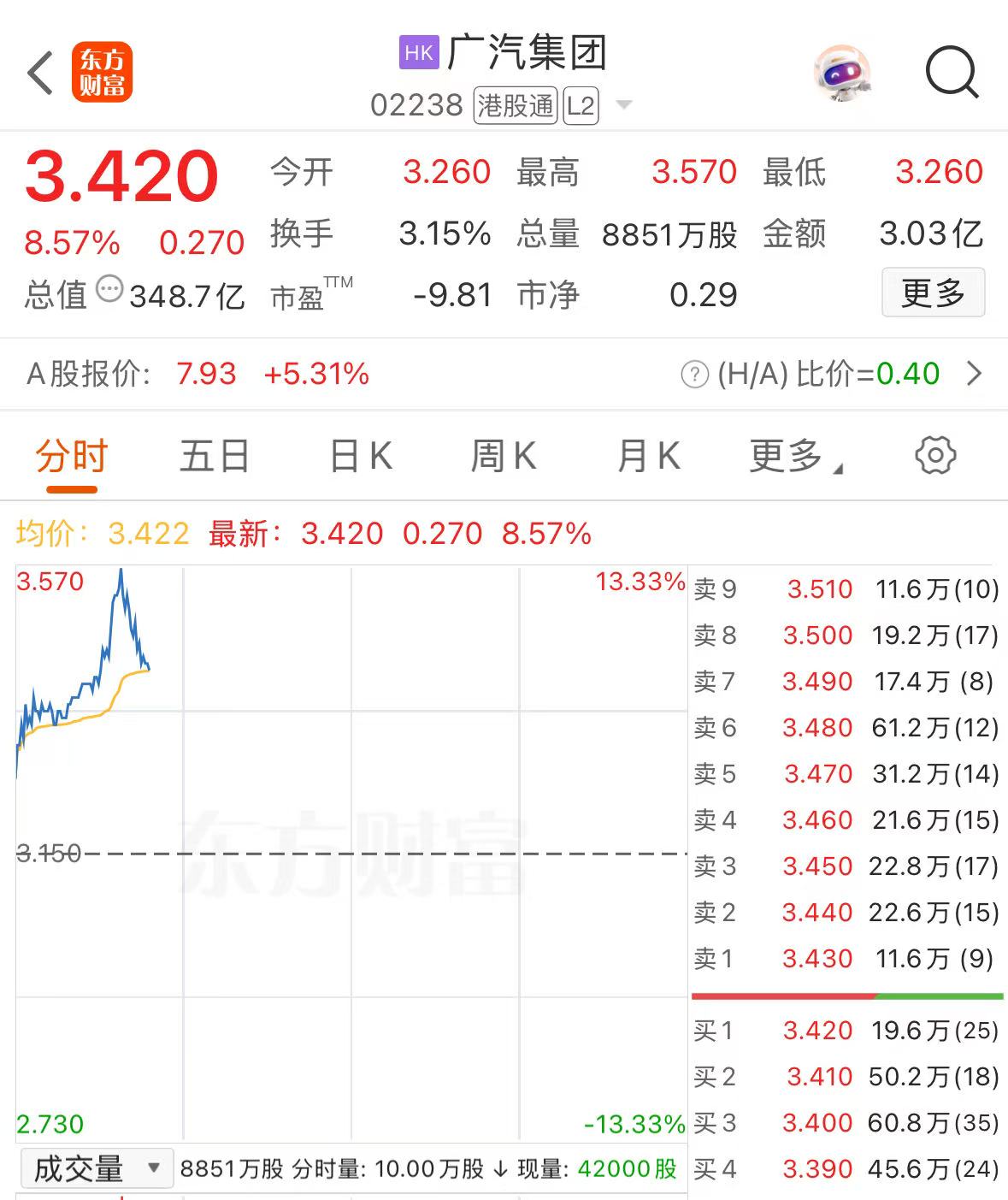 港股异动 | 联合京东、宁德时代推新车 广汽集团一度大涨超13%