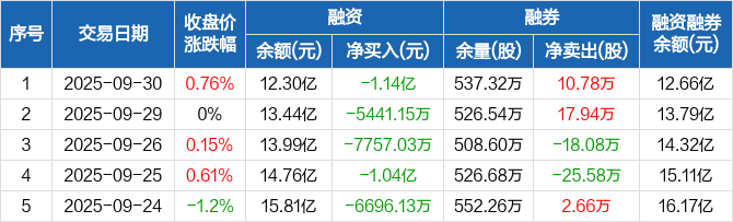 农业银行:融资余额12.3亿元,创近一年新低(09-30)