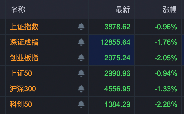 10月17日,A股三大指数集体低开。截至发稿,创业板指跌幅扩大至2%。