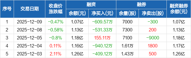 青岛港:融资净偿还609.57万元,融资余额1.07亿元(12-09)