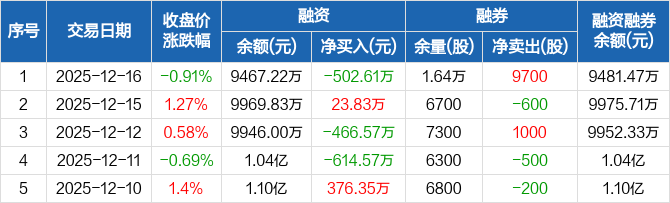 青岛港:融资净偿还502.61万元,融资余额9467.22万元(12-16)