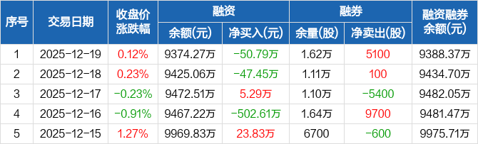 青岛港:融资净偿还50.79万元,融资余额9374.27万元(12-19)