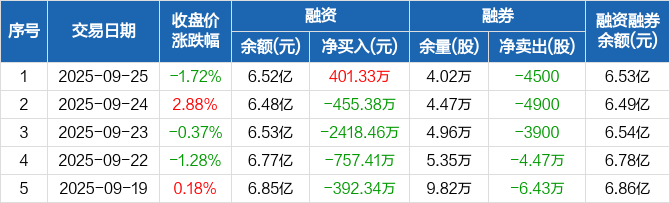 骆驼股份:融资净买入401.33万元,融资余额6.52亿元(09-25)