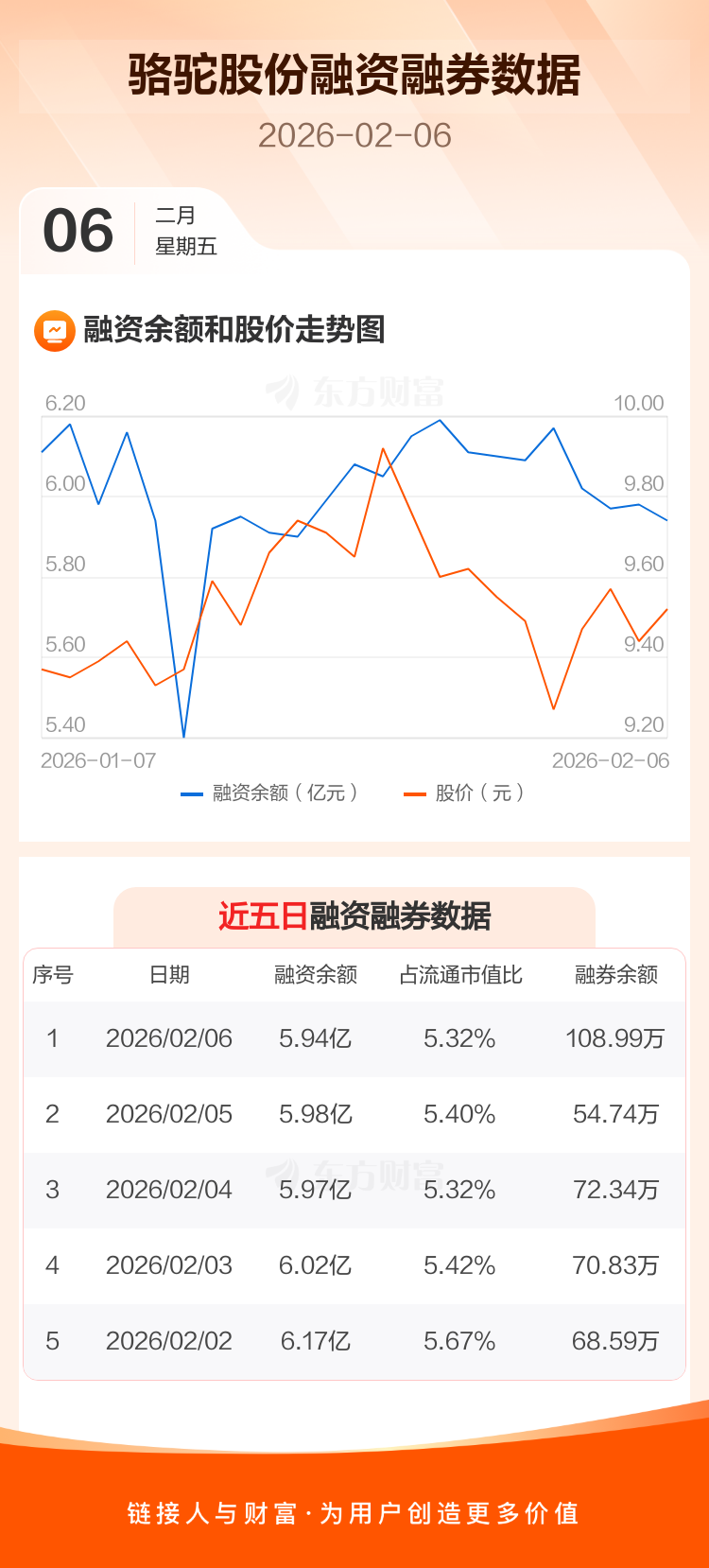 交易所最新数据显示,骆驼股份于2026年2月6日获融资买入1291.35万元,融资偿还1666.17万元,当日融资净偿还374.83万元。目前,该股融资余额5.94亿,占流通市值比例为5.32%。