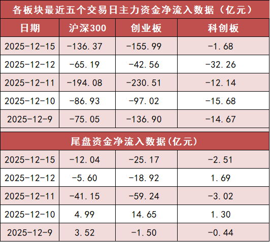 沪深300今日(12月15日)主力资金净流出136.37亿元,创业板净流出155.99亿元。