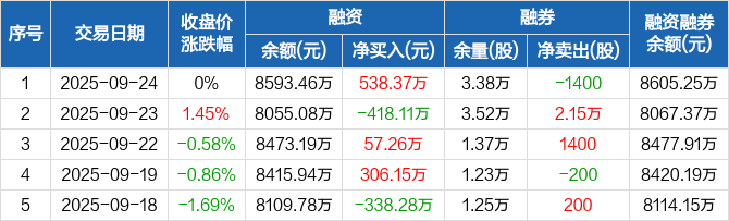 秦港股份:融资净买入538.37万元,融资余额8593.46万元(09-24)