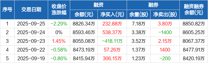 秦港股份:融资净买入232.88万元,融资余额8826.34万元(09-25)