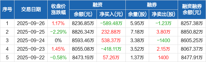 秦港股份:融资净偿还589.48万元,融资余额8236.85万元(09-26)