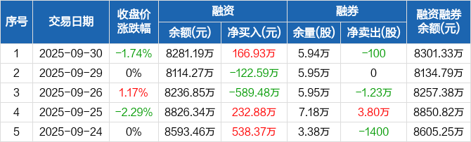 秦港股份:融资净买入166.93万元,融资余额8281.19万元(09-30)