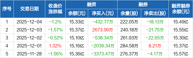 交通银行:融资净偿还432.77万元,融资余额15.33亿元(12-04)