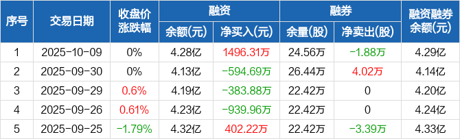 广深铁路:融资净买入1496.31万元,融资余额4.28亿元(10-09)