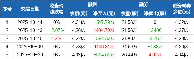 广深铁路:融资净偿还517.79万元,融资余额4.31亿元(10-14)