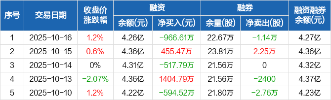 广深铁路:融资净偿还966.61万元,融资余额4.26亿元(10-16)