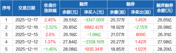 新华保险:融资净偿还3347.09万元,融资余额26.51亿元(12-17)