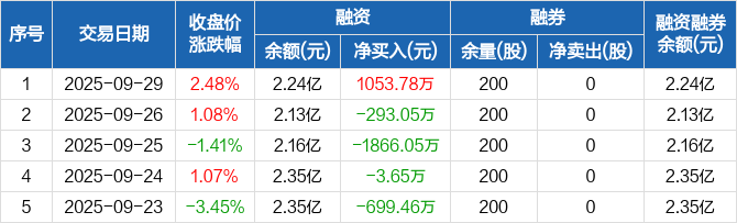 怡球资源:融资净买入1053.78万元,融资余额2.24亿元(09-29)
