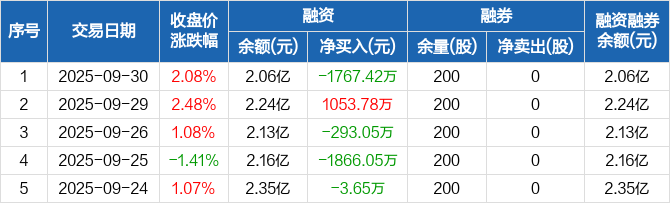 怡球资源:融资净偿还1767.42万元,融资余额2.06亿元(09-30)