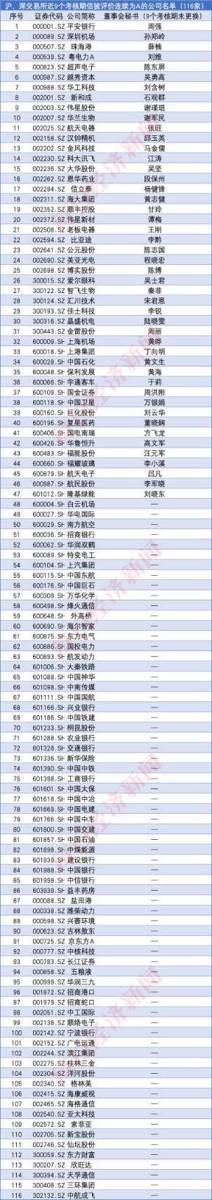 连续9次信披评价获评A级有多难?近日,每经资本眼专栏记者收集了沪深两大交易所发布的最近9个考核期信息披露工作评价结果的通报数据(2016年7月1日~2025年6月30日,由于上交所网站仅有最近9个考核期的评价数据,因此沪深两市均按照9个考核期数据进行统计,北交所是2025年首次发布评价结果,故不纳入统计),根据上述数据统计发现,两市共有116家上市公司连续9次全部得A(以下简称“9A公司”,详细名单请见文末),仅占最新考核期(2024~2025年)5104家参评上市公司的2.27%。