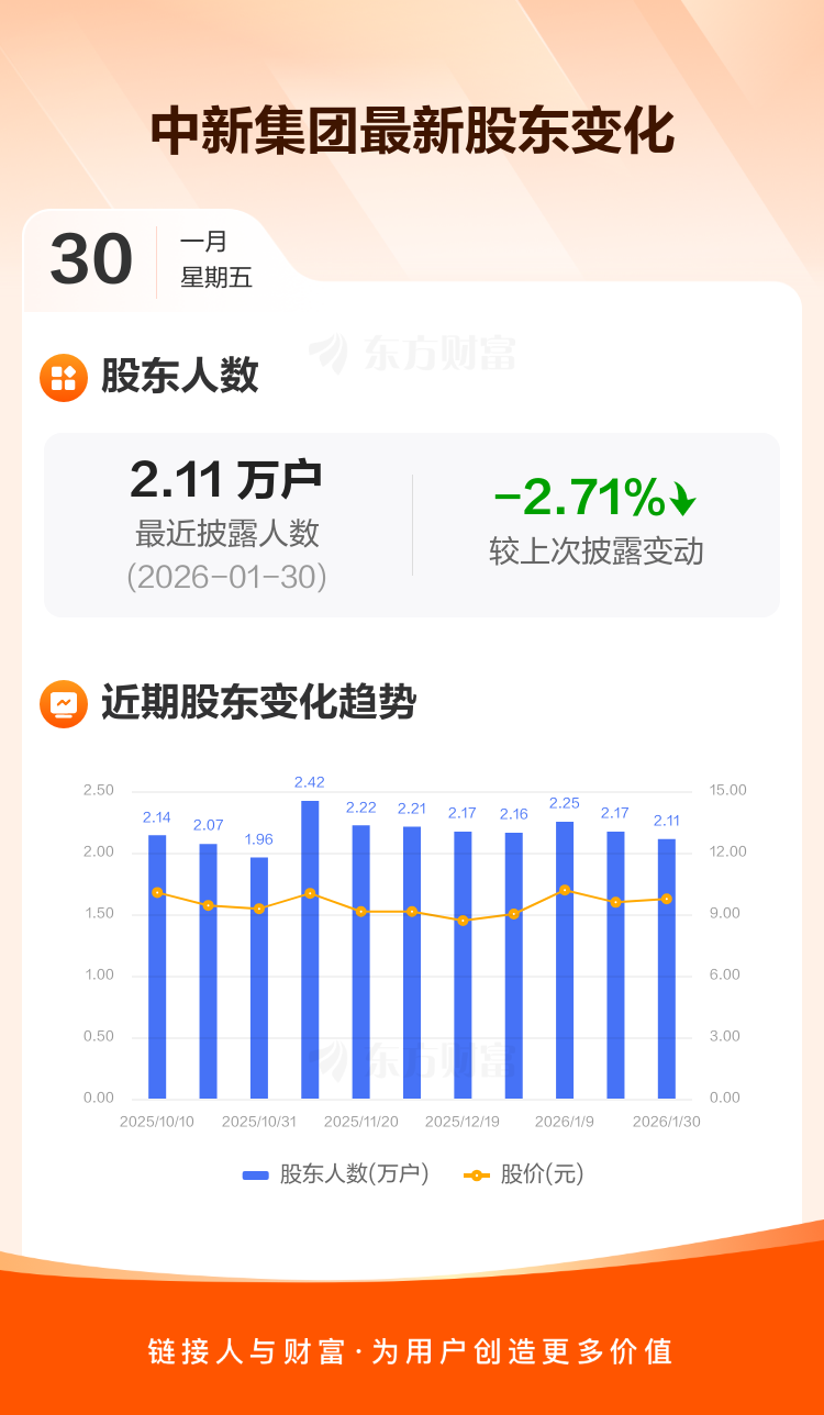中新集团:截至1月30日最新股东户数2.11万户,较上期减少2.71%