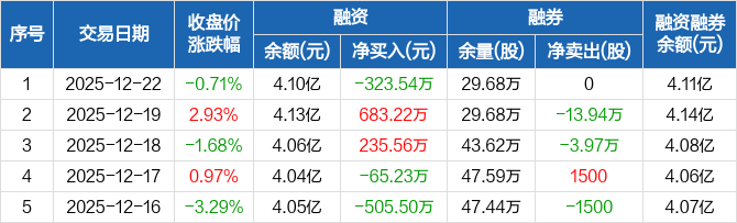 衢州东峰:融资净偿还323.54万元,融资余额4.1亿元(12-22)