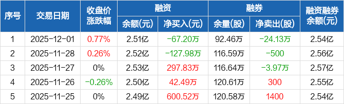 北元集团:融资净偿还67.2万元,融资余额2.51亿元(12-01)