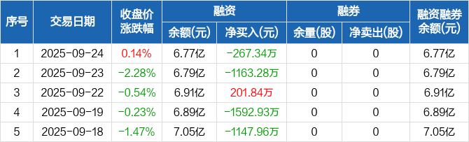 会稽山:融资净偿还267.34万元,融资余额6.77亿元(09-24)