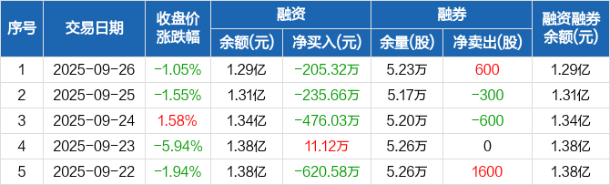 北辰实业:融资余额1.29亿元,创近一年新低(09-26)