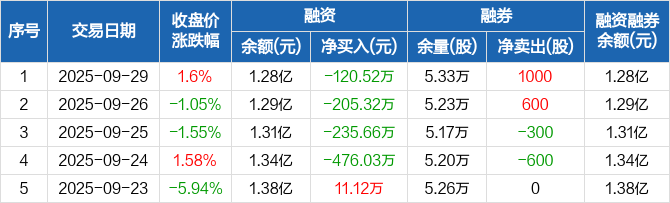 北辰实业:融资余额1.28亿元,创近一年新低(09-29)