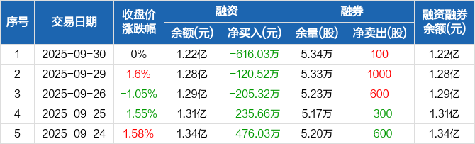 北辰实业:融资余额1.22亿元,创近一年新低(09-30)