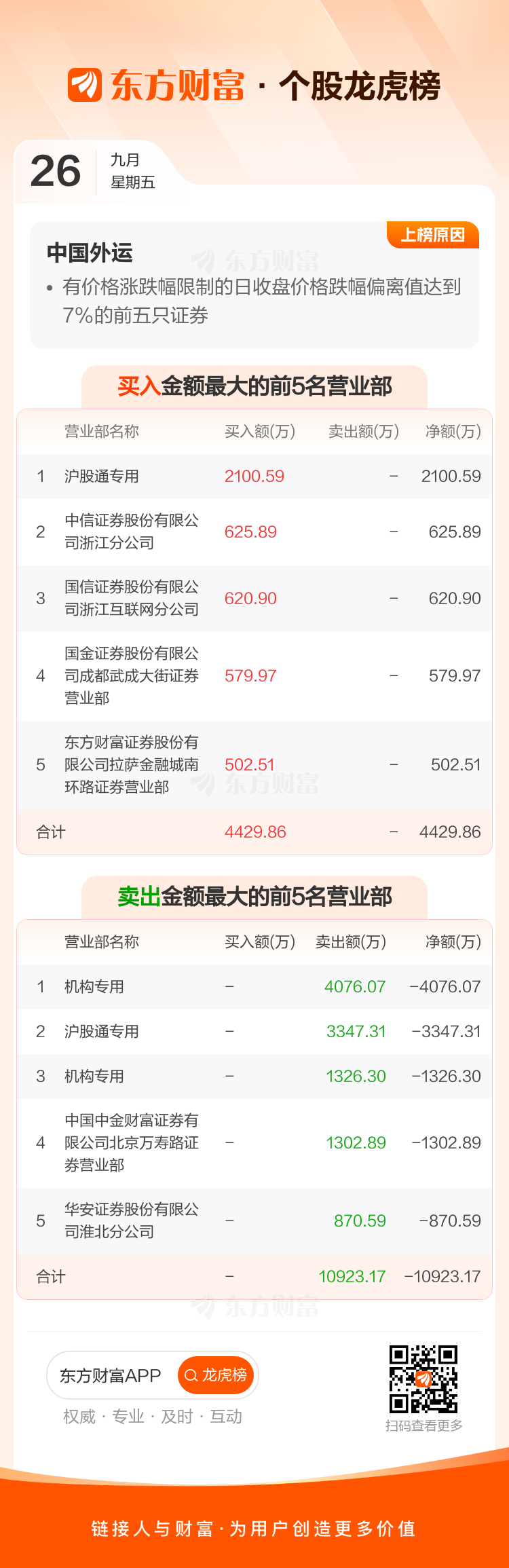 中国外运(601598)龙虎榜数据(09-26)