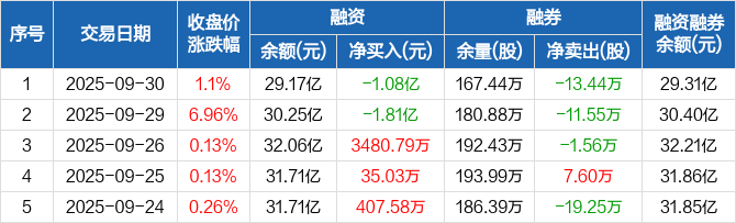 中国铝业:融资净偿还1.08亿元,融资余额29.17亿元(09-30)