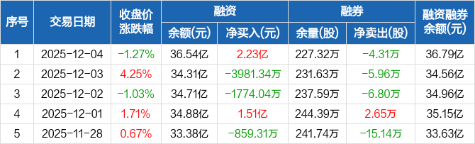 中国铝业:融资净买入2.23亿元,两市排名第五(12-04)