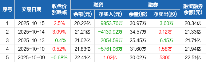 融资方面,当日融资买入1.02亿元,融资偿还2亿元,融资净偿还9853.76万元,连续4日净偿还累计2.18亿元。融券方面,融券卖出8.11万股,融券偿还11.71万股,融券余量30.97万股,融券余额1142.79万元。融资融券余额合计20.34亿元。
