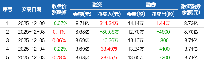 上海医药:融资净买入314.34万元,融资余额8.71亿元(12-09)