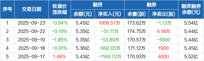 中信重工:融资净买入1006.57万元,融资余额5.45亿元(09-23)