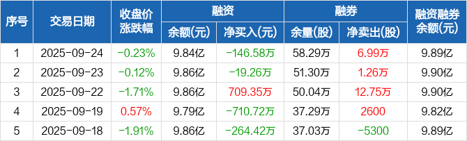 中国核建:融资净偿还146.58万元,融资余额9.84亿元(09-24)