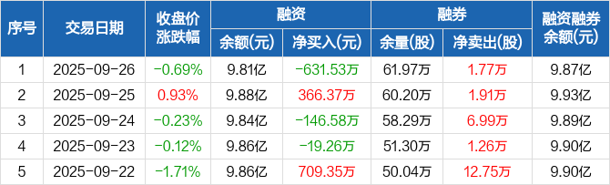 中国核建:融资净偿还631.53万元,融资余额9.81亿元(09-26)