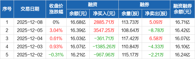 中国中冶融资融券信息显示,2025年12月8日融资净买入2885.71万元;融资余额16.68亿元,创近一年新高,较前一日增加1.76%。