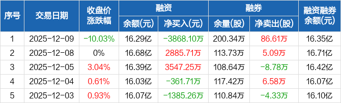 中国中冶:融资净偿还3868.1万元,融资余额16.29亿元(12-09)