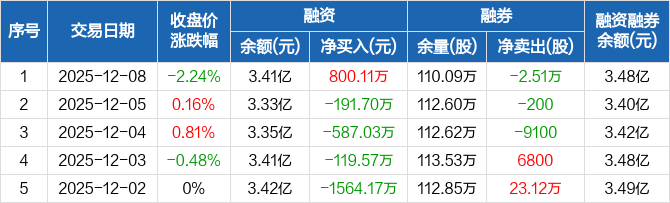 旗滨集团:融资净买入800.11万元,融资余额3.41亿元(12-08)