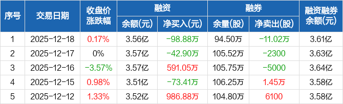 旗滨集团:融资净偿还98.88万元,融资余额3.56亿元(12-18)