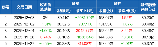 中国电建:融资净偿还2081.7万元,融资余额30.11亿元(12-03)