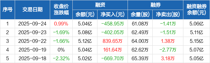 XD滨化股:融资净偿还458.95万元,融资余额5.04亿元(09-24)