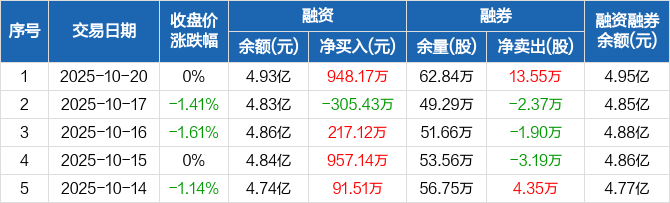 滨化股份:融资净买入948.17万元,融资余额4.93亿元(10-20)