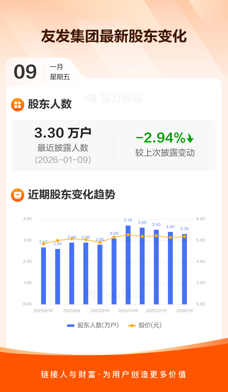 友发集团:截至1月9日最新股东户数3.30万户,较上期减少2.94%