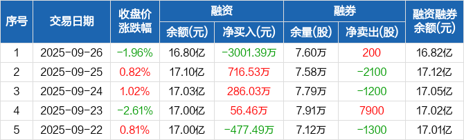 中国卫通:融资净偿还3001.39万元,融资余额16.8亿元(09-26)