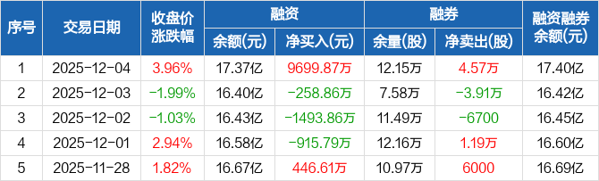 中国卫通:融资净买入9699.87万元,两市排名第17(12-04)