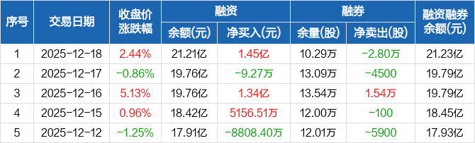 中国卫通:融资余额21.21亿元,创历史新高(12-18)