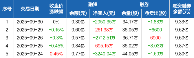 中国电信:融资净偿还2950.35万元,融资余额9.3亿元(09-30)