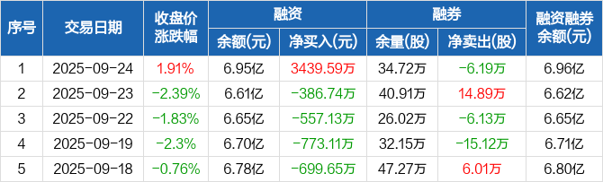 晶科科技:融资净买入3439.59万元,融资余额6.95亿元(09-24)
